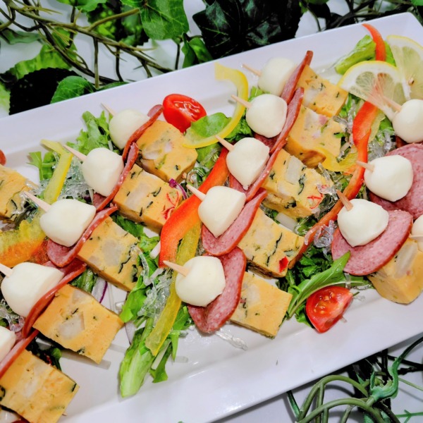 - プチトマトのカプレーゼ&ソーセージとズッキーニのピンチョス